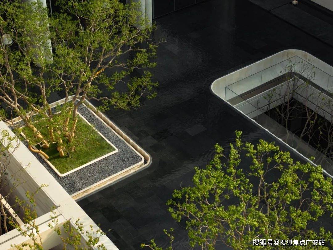 不仅如此,整体抬高也提升了小区私密性,站在外部,视线因地势落差被有效阻隔,极难窥探到园林内部的场景。这一设计完美化解了地块本身的难题:
