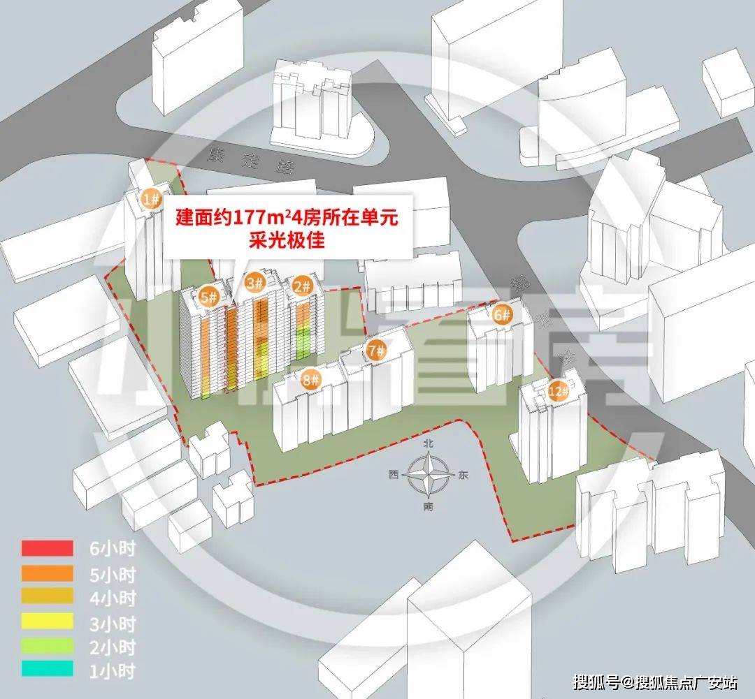 除了一楼以外,其他楼层的日光都在4个小时以上,这已经是极其出众的成绩了。尤其是在高层林立的市区,很少有如此采光的产品。