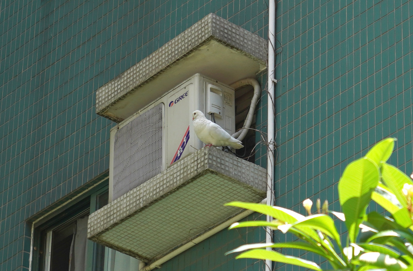 在靠近珠江的几栋楼,白鸽“咕咕”叫着在空中盘旋,又消失在楼栋间,定睛一看,原来它们不是躲起来了,而是回到了空调外挂机露台上的“家”。白鸽在空调外挂机露台筑巢后,各层窗台随处可见粪便、羽毛,夏季高温下容易散发出阵阵异味。据富女士反映,偶尔还能发现鸽子的尸体,有的空调出风口也被堵塞,此外,清晨鸽子的叫声也给他们的生活带来了困扰。富女士说:“希望物业管理处对鸽子全部进行清除。”