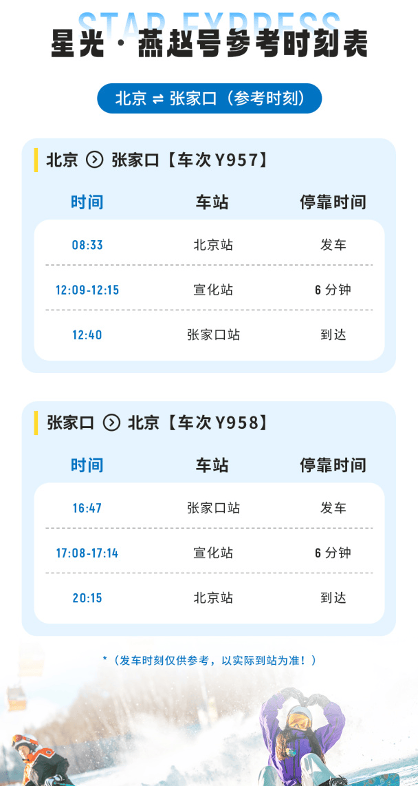 近日,国铁北京局发布消息,11月15日“星光燕赵号”将正式开往张家口。本次列车共设7节对客编组,总载客量216 人,8时33分从北京站出发,途经宣化站,12时40分到达张家口站;16时47分从张家口站出发,20时15分到达北京站。乘客可登录“铁路12306”App,在首页。