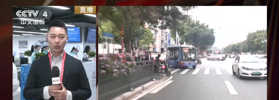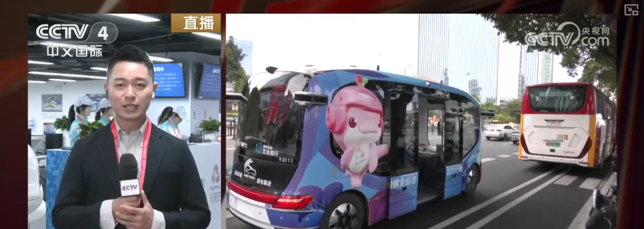 特别方便的是,为了服务全运会,广州公交推出了5条自动驾驶的公交线路。比如在主新闻中心的楼下,就有一条专门接驳媒体的自动驾驶公交环线。另外几条线也都是在几个重要场馆周边,服务场馆工作人员和普通的市民群众。