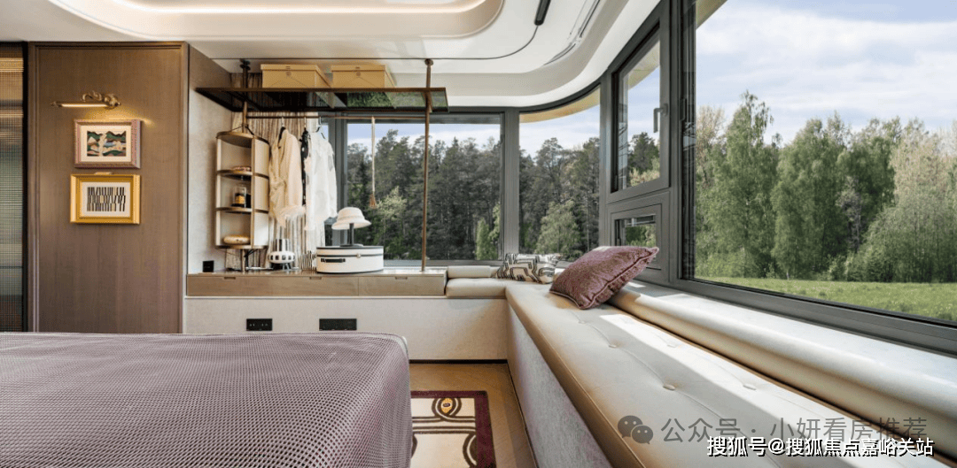 主卧飘窗无立柱遮挡视野,尤其是靠近衣柜的部分可作为创新次净衣柜,平时回家脱掉的外套可以挂在这里。