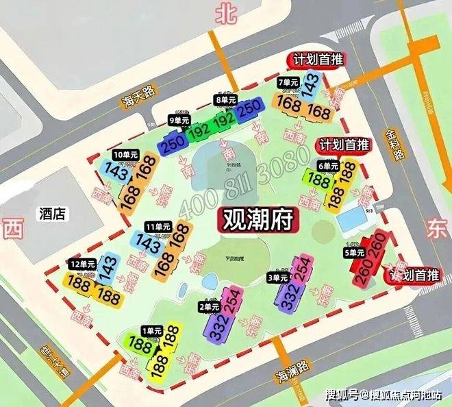 ,共629套房源,纯南向户型,带高品质精装交付!观潮府的项目规划正式出炉,最低楼层